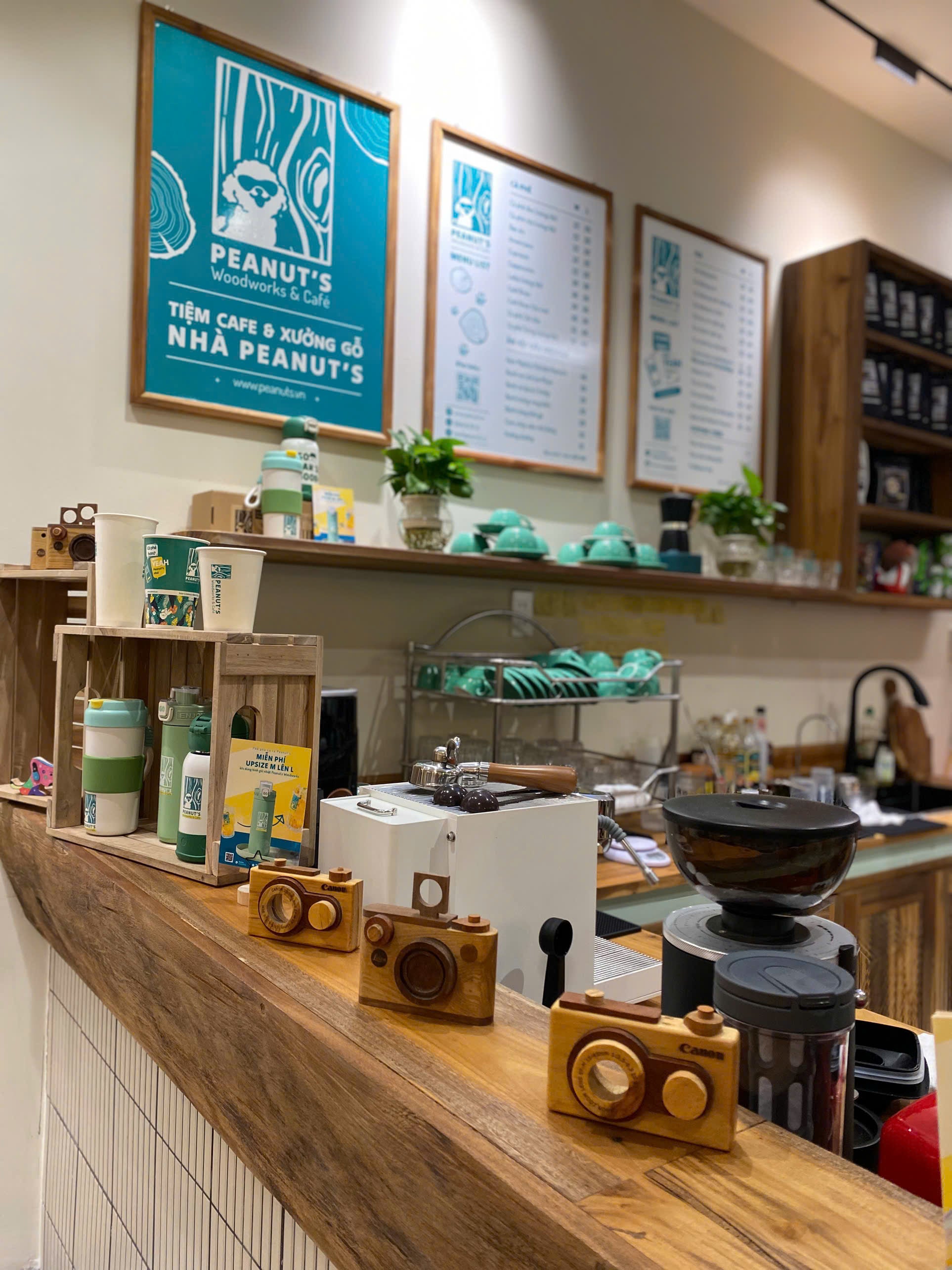 Tại Peanut’s Woodworks & Café, bạn không chỉ thưởng thức ly cà phê thơm ngon mà còn bước vào một không gian xanh mát, nơi gỗ và ý tưởng hòa quyện. Đây là nơi lý tưởng để học tập, làm việc, chill cùng bạn bè hoặc thử sức với các bộ DIY gỗ ngay tại quán.